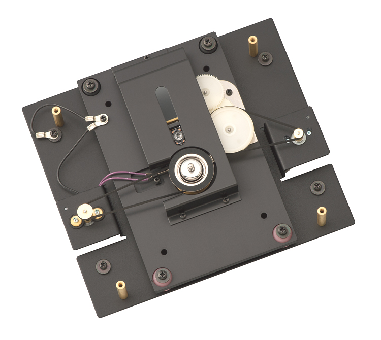 音楽CDは線速度一定で信号を読み取るために、外周へ行くにしたがい回転速度を徐々に落とさなければなりません。通常、この線速度調整はスピンドルモーターが受け持ちます。一般のCDプレーヤーやトランスポートは、ディスク用ターンテーブルの真下にモーターが配され、モーターの軸に直結したターンテーブルを直接駆動するダイレクトドライブ方式を採用しています。しかし、制御された安定的な回転を得るためには、ある程度大きなモーターを使用する必要があり、そのモーターから発生する振動や電磁ノイズによって生じる信号の歪みから逃れることができません。